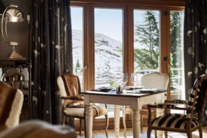 El Lodge Ski & Spa lleva 10 años siendo el hotel de referencia de Sierra Nevada y la verdad, que no nos sorprende! Este hotel boutique decorado por el estudio de Andrew Martin, cuenta con un estilo nórdico mimetizándose con el entorno tanto en el interior como en el exterior. Sus paredes de madera finlandesa aportan elegancia y mantienen el calor en cada una de las estancias apostando por una construcción sostenible de diseño. Destacan los detalles en cuero y piel, que combinan a la perfección con póster retro y muebles en madera, creando un ambiente acogedor propio de un refugio de invierno de lujo.