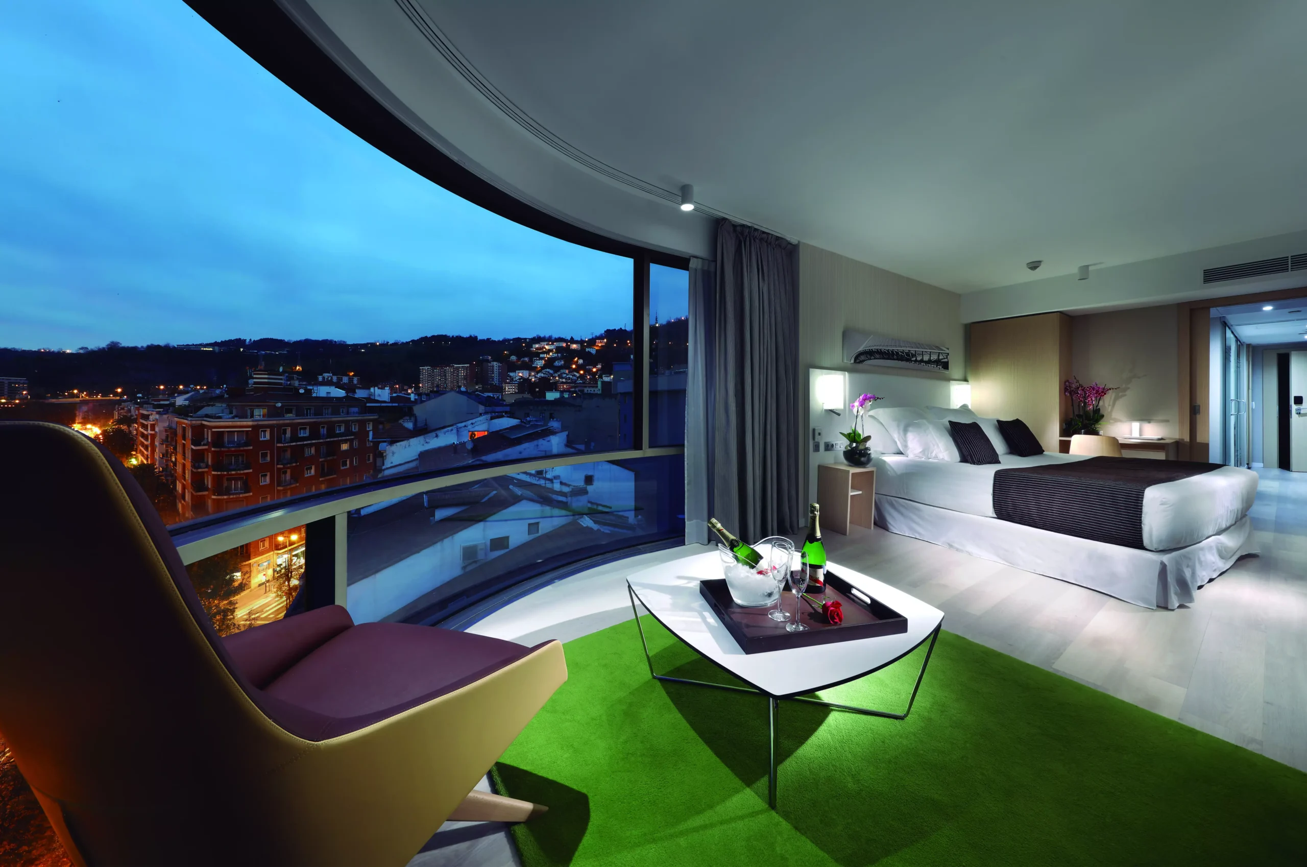 Trescientas cincuenta habitaciones hacen de este emblemático de la ciudad, el hotel más grande del norte de España. El hotel se sitúa en pleno centro de Bilbao, junto al Ayuntamiento, a 10 minutos a pie del Museo Guggenheim y rodeado de las mejores zonas de compras y de los populares pintxos. Perfectamente comunicado con la estación de tren, termibus y el aeropuerto, es un hotel perfecto para viajes de trabajo o turismo urbano.
