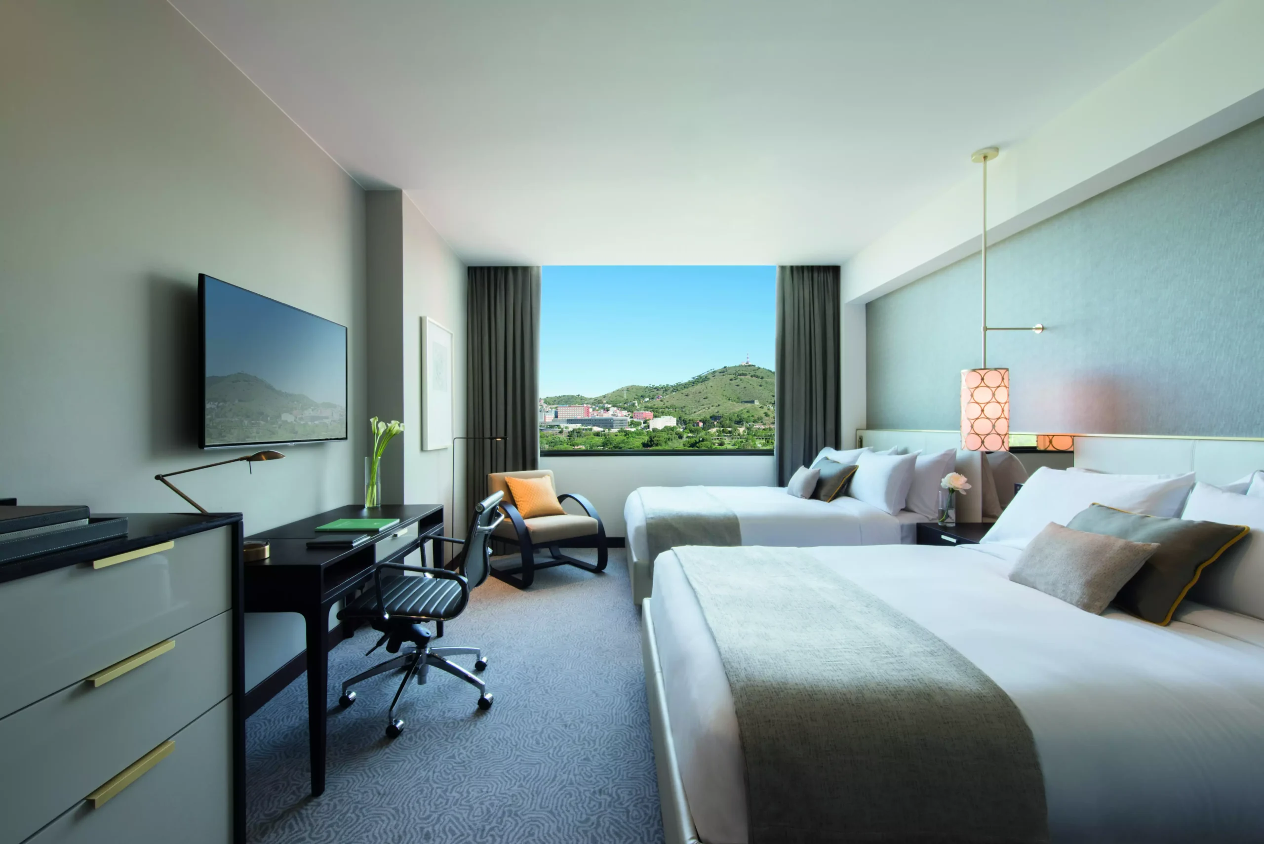 El Hotel cuenta con 432 espaciosas habitaciones con maravillosas vistas a Barcelona. Diseñado para el disfrute de los huéspedes, el hotel da la bienvenida a un oasis de tranquilidad en un espacio de gran belleza natural. Unos jardines botánicos del siglo XIX enmarcan este tranquilo resort urbano situado justo detrás de una de las principales arterias de la ciudad, la Avenida Diagonal.