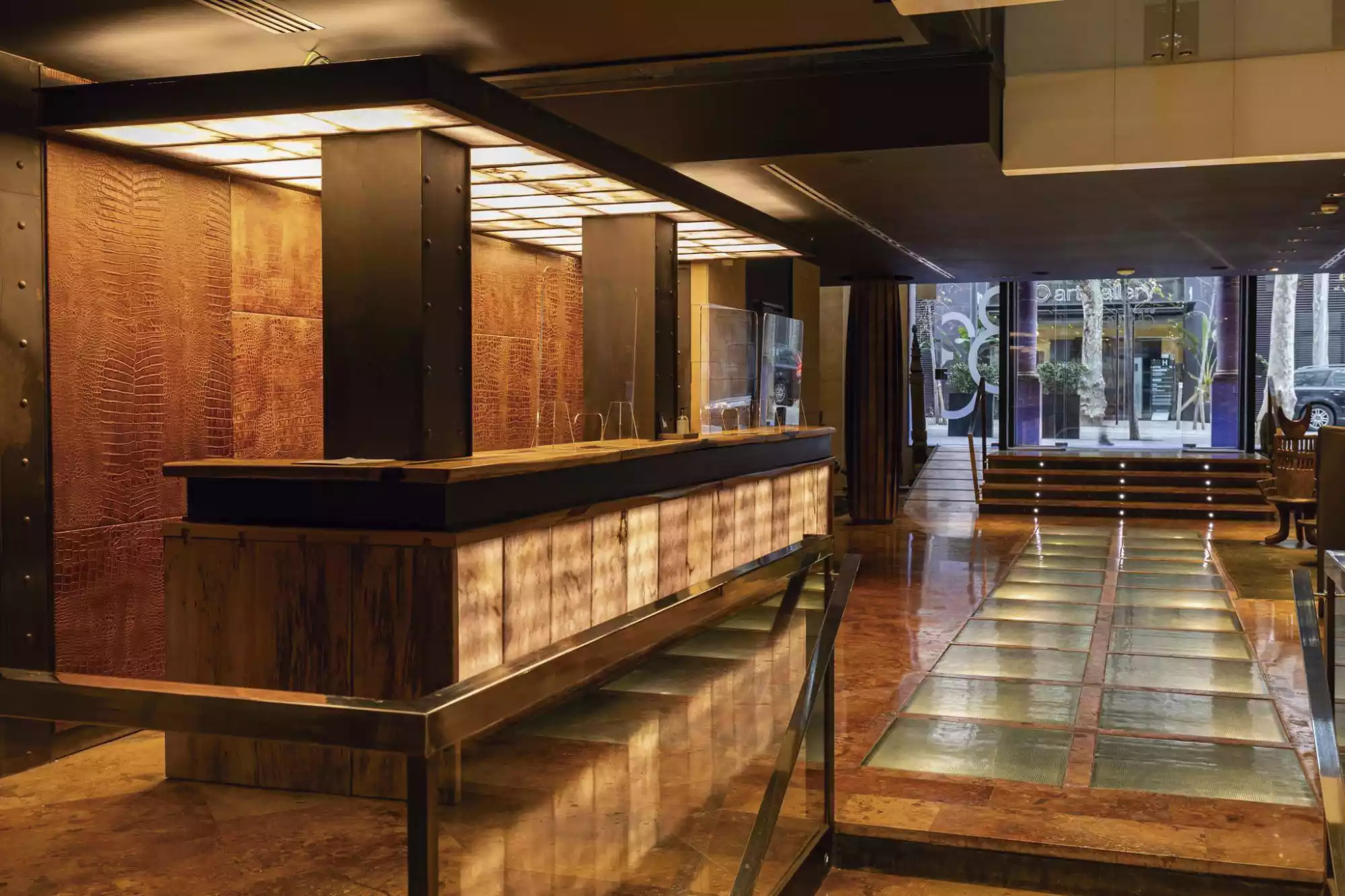 El hotel, ubicado en un clásico edificio de mediados del siglo XIX, acoge en su interior los muros de arquitectura industrial que reproducen las fábricas textiles de la época en Catalunya y en el exterior, una fachada de piedra de canteras egipcias, mármoles rojos y unas bellas columnas de mármol.