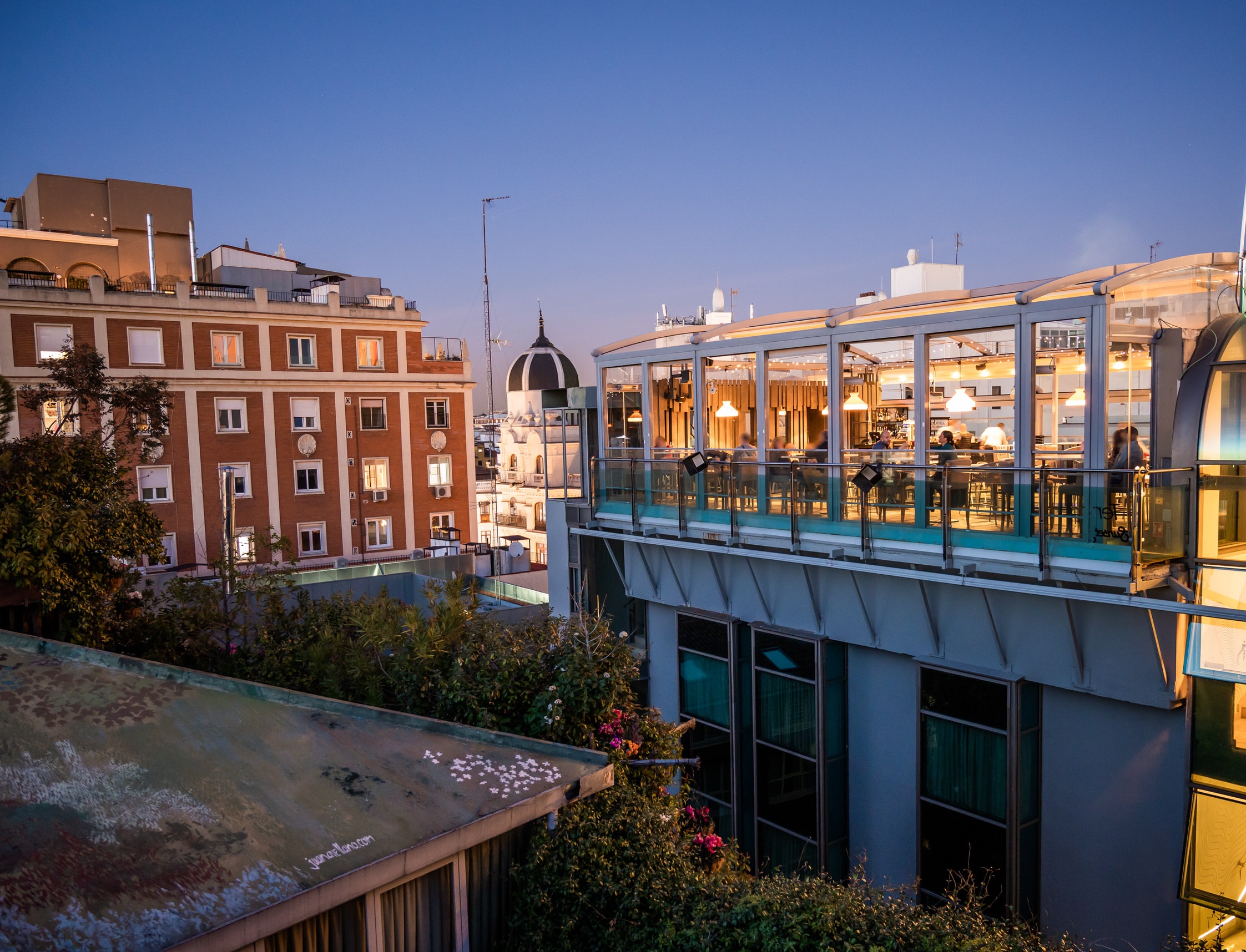 Ubicado en pleno corazón de Madrid, a solo 100 metros de la emblemática Gran Vía, el Hotel Santo Domingo de 4 estrellas es la estancia ideal que combina comodidad, sostenibilidad y encanto urbano. Este hotel se convierte en un destino en sí mismo, perfecto para quienes buscan disfrutar del ocio, las compras y los espectáculos que ofrece la ciudad. La terraza en la séptima planta es un rincón muy especial, donde los huéspedes pueden disfrutar de una exclusiva piscina durante el día en la temporada de verano. Este espacio, uno de los más conocidos y solicitados por los visitantes, se transforma al caer la noche en un restaurante acogedor, que ofrece una exquisita propuesta gastronómica con vistas panorámicas del barrio de los Austrias. Este ambiente sofisticado y relajante invita a vivir una noche inolvidable en cualquier época del año. Además, el Hotel Santo Domingo cuenta con un magnífico jardín vertical de 1.000 m², que no solo embellece el entorno, sino que también aporta beneficios ambientales significativos, contribuyendo a la sostenibilidad y haciendo del hotel un lugar único para los amantes de la naturaleza y el diseño urbano.