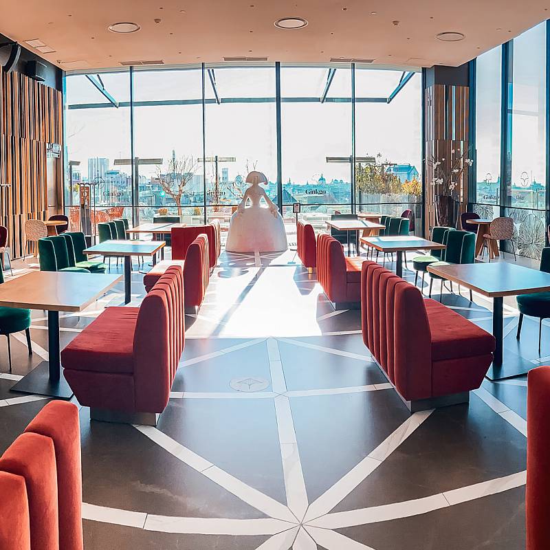 El hotel completa su oferta de lujo con propuestas premium a través de su rica gastronomía en Ginkgo Sky Bar, los servicios de Biloba Spa, o las numerosas obras de arte que alberga.