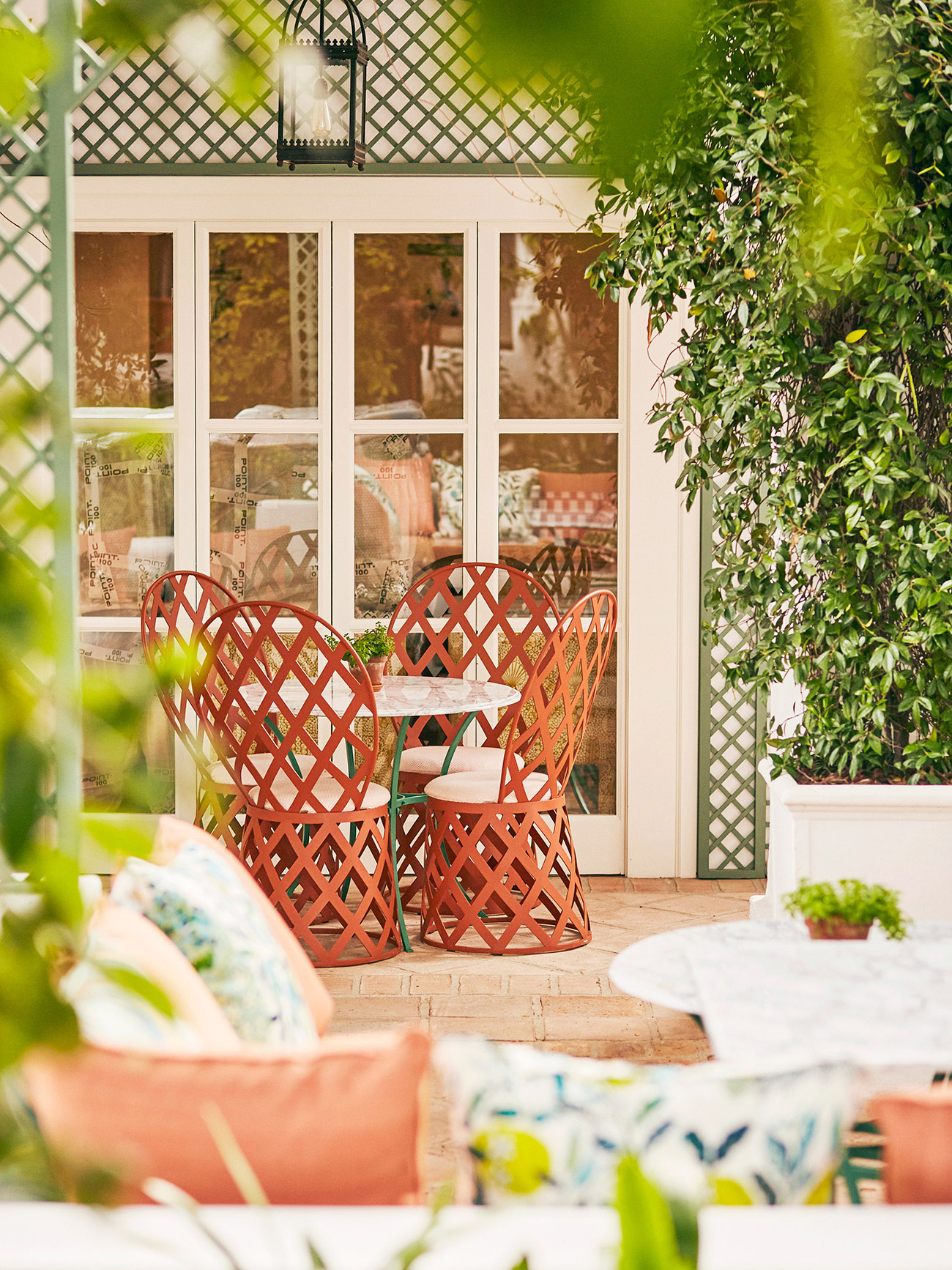 Escondido entre florecientes agapantos, aromáticos jazmines y envolventes enredaderas, El Patio encarna el espíritu acogedor inimitable del que nació Marbella Club. El Patio se ubican donde estaban las primeras habitaciones del hotel con un estilo inspirado en los moteles de la década de los 50. Durante el día su patio central ofrece un vibrante oasis donde tomar cafés ricos y batidos sutiles, almuerzos tranquilos y deliciosos cócteles, que se convierten en los perfectos acompañantes del Tardeo. Mientras que por la noche cobra vida bajo cientos de luces parpadeantes, y una sorprendente barbacoa al aire libre y música en vivo, perfecto para ponerse al día con amigos en una cena con platos para compartir o un tentador cóctel.