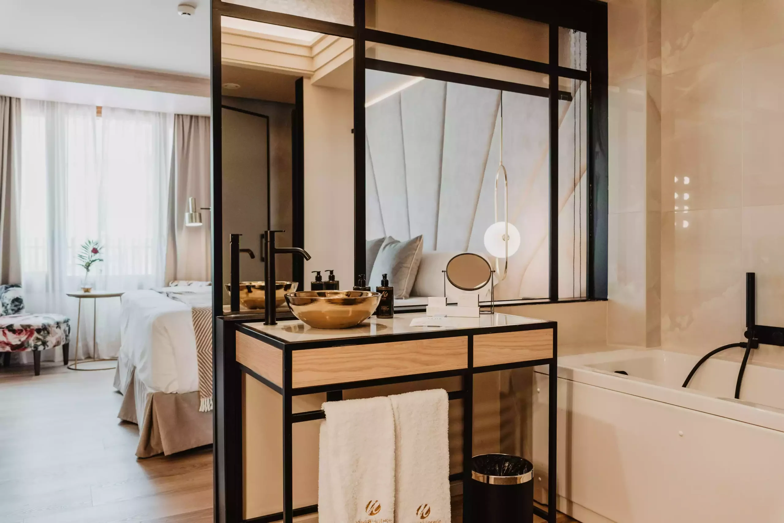 Nivia Born Boutique Hotel te envuelve en la elegancia y exclusividad de un hotel 5 estrellas de diseño art decó situado en el emblemático Paseo del Born, en el casco histórico de Palma. Sus sofisticadas habitaciones y gastronomía gourmet te llevan al placer más sublime, con el Mediterráneo como telón de fondo. Un mundo de sensaciones, en perfecta armonía con la cultura local, enriquecido por su pasión por el arte, presente en cada rincón. Decoradas con sutiles elementos art decó y motivos florales, las 24 habitaciones del hotel sumergen al huésped en un romántico sueño con el máximo confort e intimidad y la dedicación plena de su equipo. Sus formidables tocadores, espejos y amenities ecológicos convierten la estancia del huésped en una experiencia sensorial. Su sublime The Hidden Suite, son 40m2 especialmente diseñados para vivir el lujo en primera persona con botella de Moët incluida si se reserva a través de su web. Bajar el ritmo en este hotel es posible. El slow life se ha convertido en faro para la marca y así lo avala su cuidada oferta gastronómica. Productos km 0, de temporada y ecológicos que se encuentran en la carta para una alimentación consciente: menús semanales, brunchs, carta de desayunos, almuerzos y cenas. Una oferta completa. Su gran secreto, es el El Cielo del Borne, el rooftop en la 8ª planta con vistas panorámicas al mar Mediterráneo y a la catedral de Palma. Música en directo, afterworks en los meses de verano, cócteles, ambiente chill out, apetecibles aperitivos… En El Cielo del Born cada día es diferente. Cada noche, irrepetible. Único en Palma.