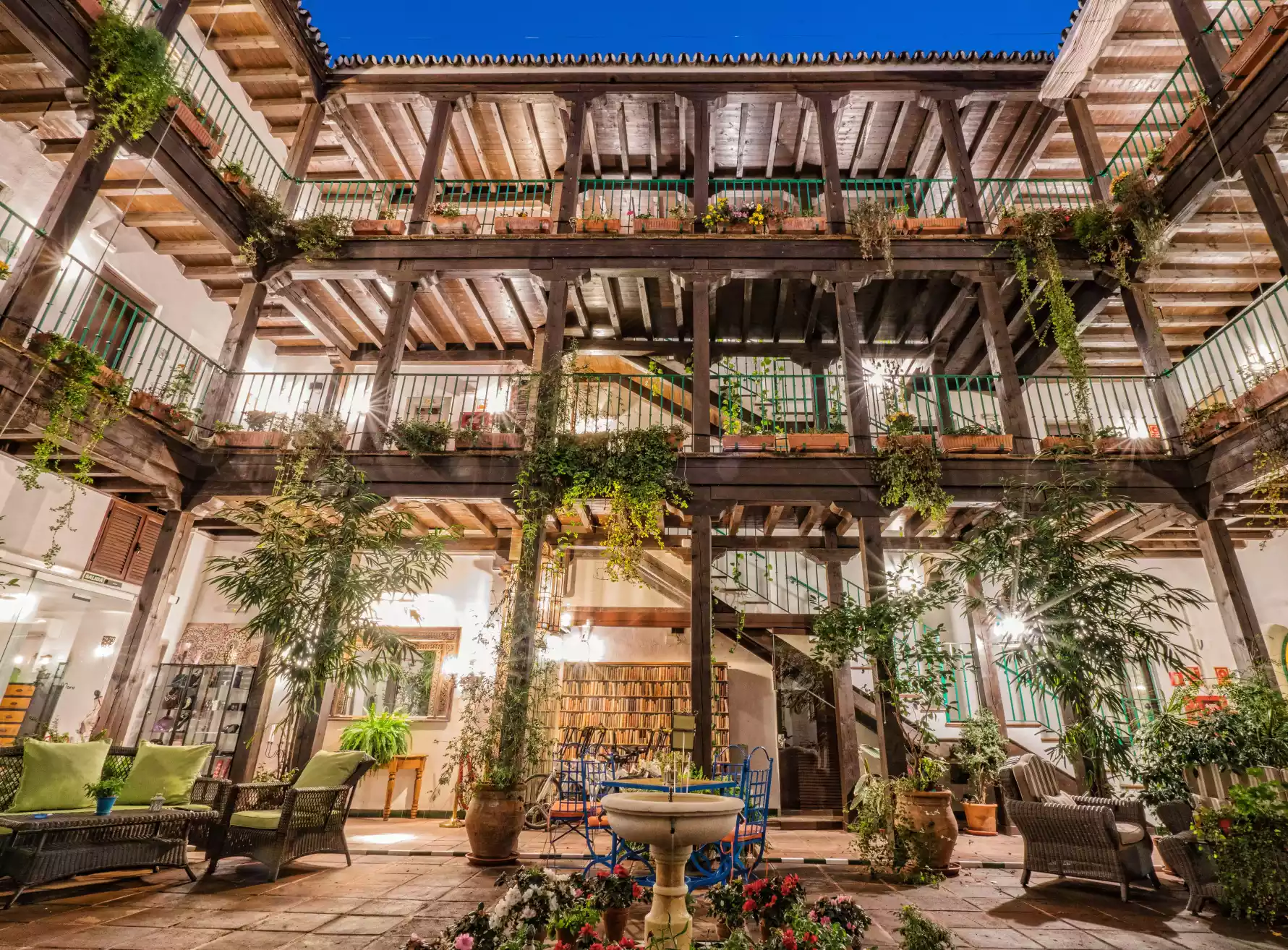 El hotel cuenta con un patio típico al que dan muchas de las habitaciones y donde podrás sentarte y disfrutar de su ambiente tranquilo. También cuenta con un popular restaurante que sirve platos de cocina tradicional andaluza y mediterránea. Se puede comer fuera en la terraza tanto como en el patio interior o en la sala de restaurante, también interior. Nuestro chef se le conoce por ofrecer no solo comida exquisita, sino también platos saludables y nutritivos con variedad para vegetarianos y veganos.