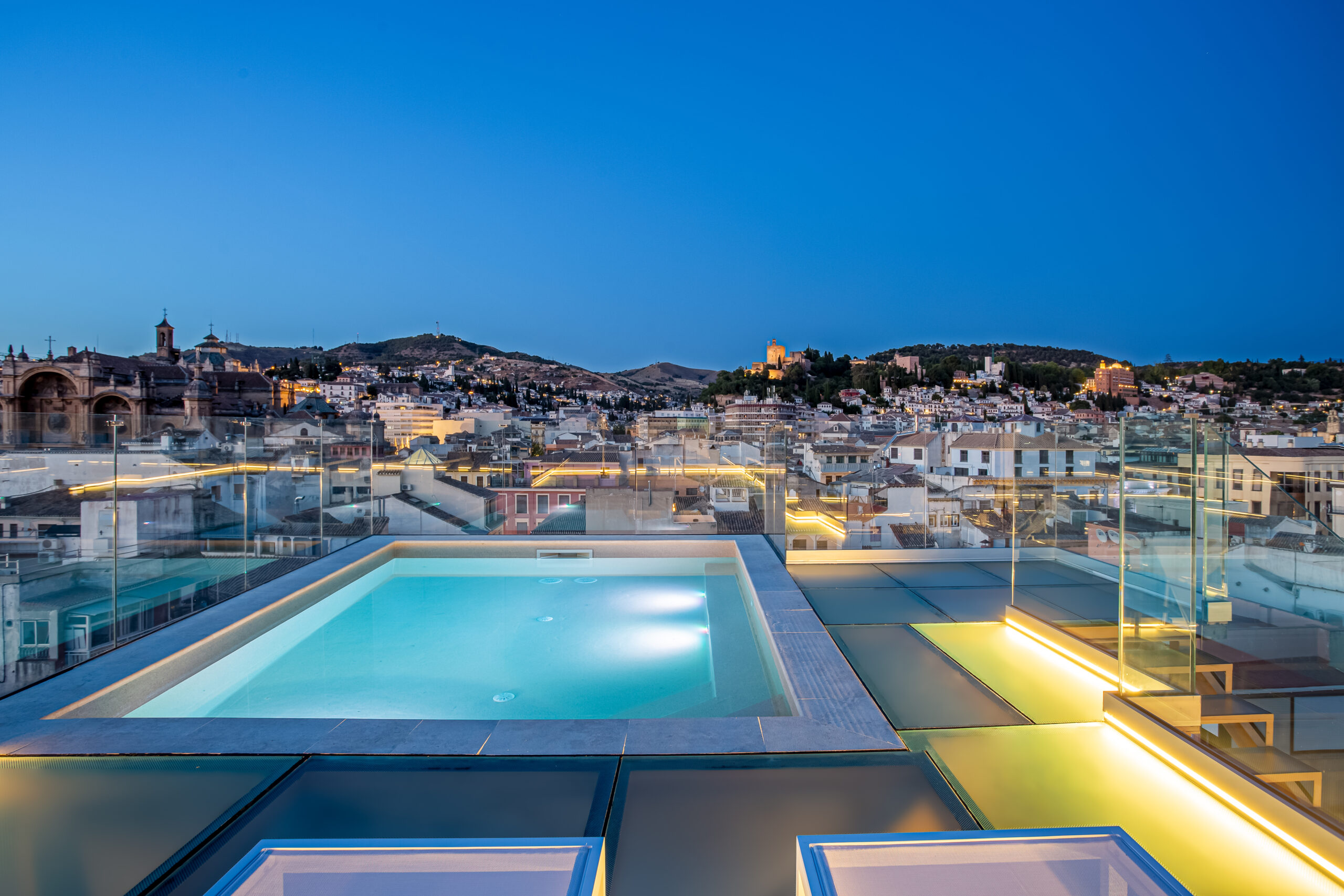 Uno de los espacios más destacados de Room Mate Leo es su impresionante azotea, que ofrece una piscina climatizada, un solárium y un honesty bar. Este oasis de tranquilidad proporciona vistas panorámicas a la emblemática Alhambra, creando un entorno perfecto para relajarse y disfrutar tras un día de exploración. La piscina, siempre a una temperatura ideal, está diseñada para brindar el máximo confort y descanso.