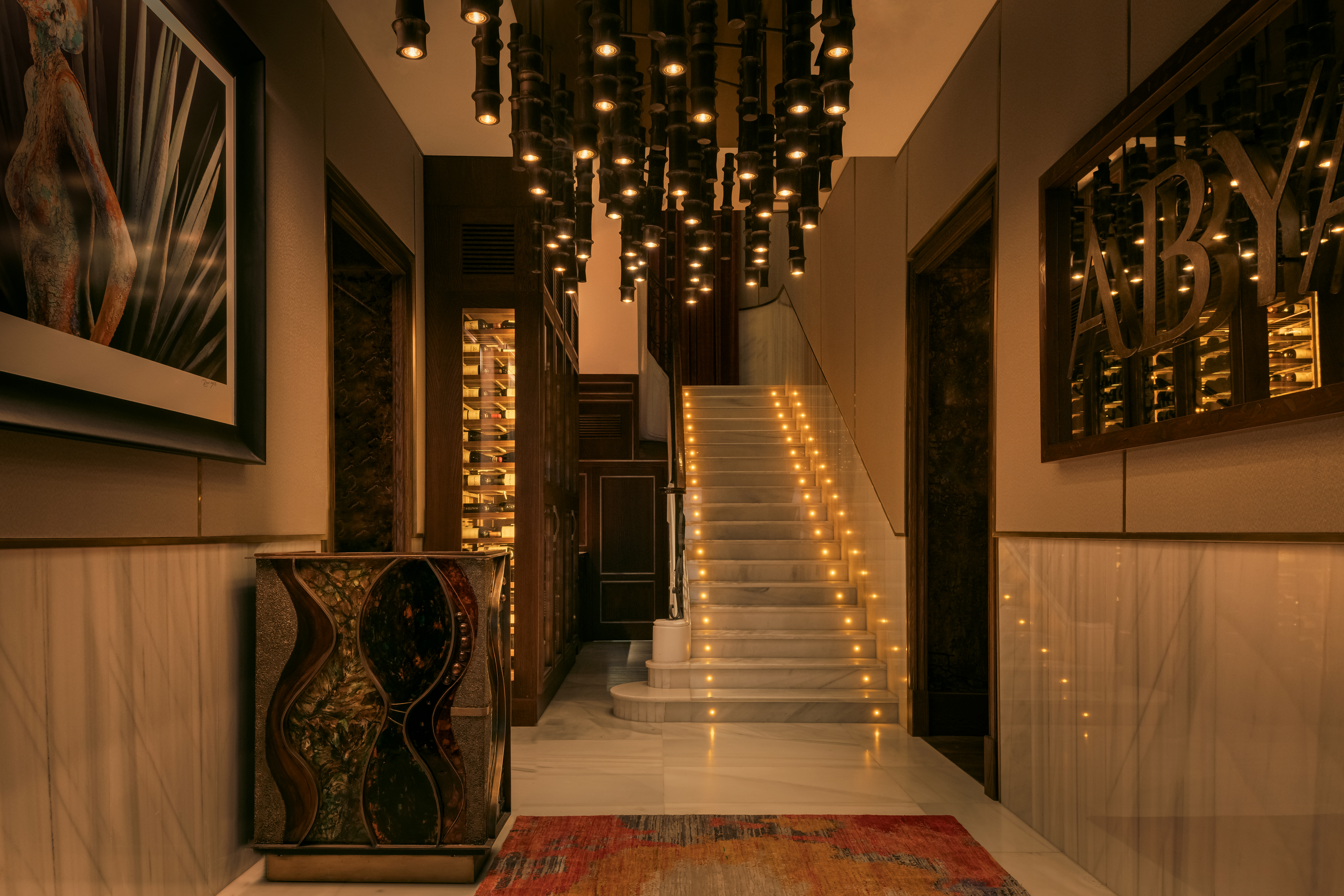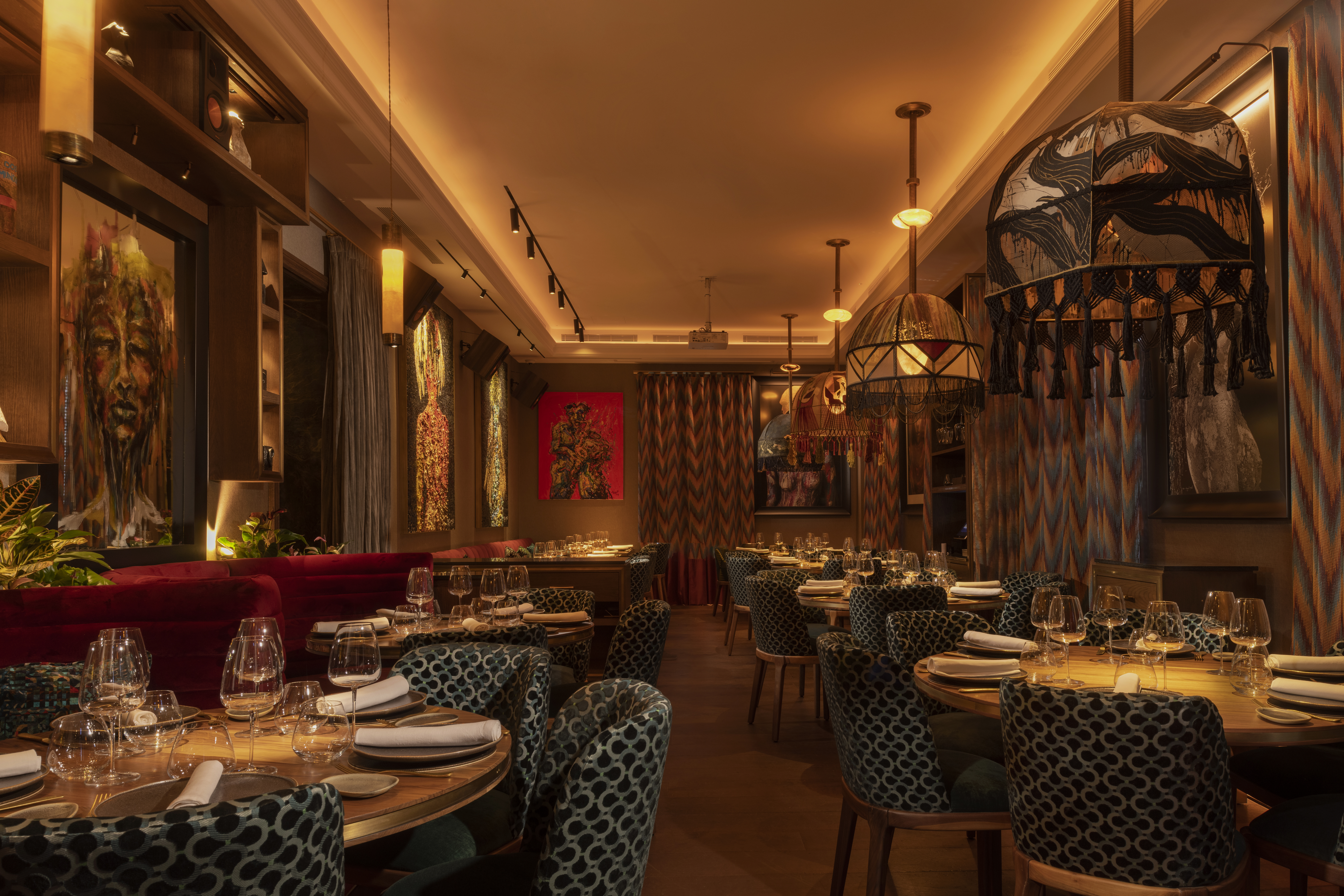 La experiencia se completa con una destacada propuesta de mixología, diseñada para acompañar tanto la oferta gastronómica como las sesiones de DJ y actuaciones en directo, creando un ambiente cosmopolita y sensorial. El arte ocupa un papel central: más de cien obras de artistas contemporáneos convierten el edificio en una galería viva donde dialogan patrimonio histórico y creación actual.