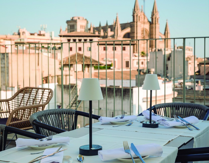 La gastronomía es parte de la esencia del hotel, cocina mediterránea con productos ecológicos y de km 0. Y una oferta muy variada, desde menús semanales a un brunch, también carta de desayunos, almuerzos y cenas. El gran secreto es El Cielo del Born, la espectacular azotea que alberga en el octavo piso con vistas panorámicas al paseo y a la catedral de Palma (la Seu). Única en Palma.