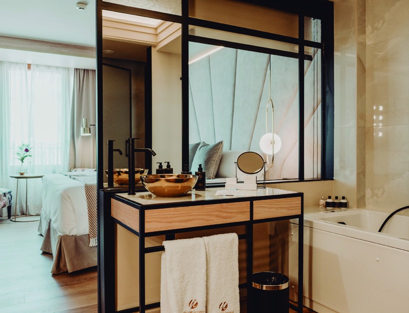 Siguiendo la década de los 50 los huéspedes encontrarán, en las habitaciones, distinguidos elementos de estilo que evocan el glamour de las estrellas de Hollywood como fabulosos tocadores, enormes cabezales de terciopelo y motivos florales que adornan paredes y recuerdan el aura femenina del hotel. O la extraordinaria The Hidden Suite, creada para vivir el lujo en primera persona, 40m2 para disfrutar de bañera hidromasaje exenta, salón privado y un obsequio especial de Bvlgari en su interior.