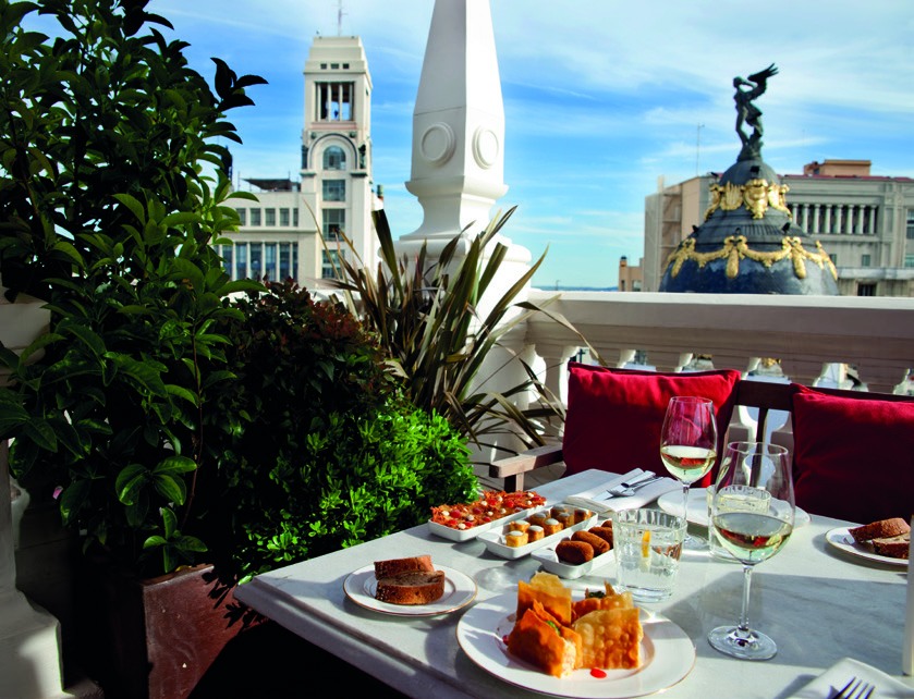 En La Terraza, rodeado de plantas, olivos y cipreses se encuentra el solarium. Un auténtico jardín urbano, pionero y privilegiado mirador de la ciudad, propone las puestas de sol más apabullantes y una oferta de apetecibles tragos en temporada. Durante todo el año, coctelería y picoteo se dan cita en La Pérgola, otro precioso balcón a la Gran Vía, climatizado para disfrutarse día tras día.