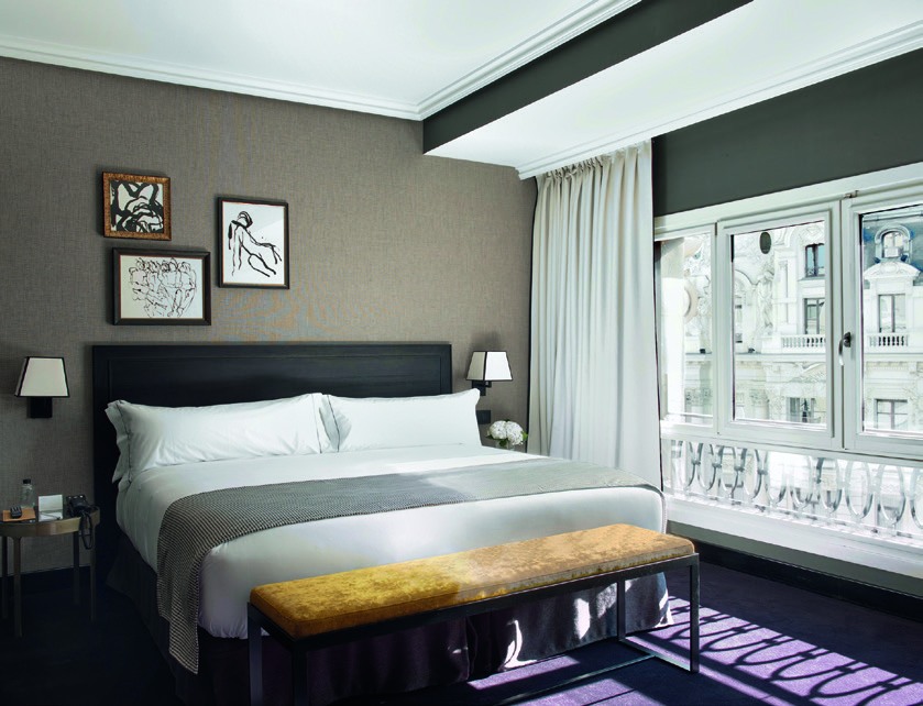 La comodidad y elegancia atemporal de sus 76 habitaciones se rodea de las espectaculares vistas de la arteria capitalina y los tejados de la ciudad sin renunciar al confort del silencio. Piezas y elementos de alto nivel, desde los altavoces alta definición a las televisiones de 40», frente a los cuadros del prestigioso artista Albert Coma o la mítica silla BKF (conocida como Bonet), son detalles deco que fascinarán a cualquier urbanita viajado y que convierten a The Principal Madrid Hotel en la parada perfecta, a caballo entre un club privado y una exclusiva residencia.