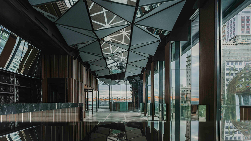Las distintas especies arbóreas son uno de los principales hilos conductores en el diseño del nuevo hotel. Así, el lobby independiente de la zona de Wellness y Ginkgo Sky Bar está enmarcado por una representación de láminas metálicas grabadas que representan la hoja del ginkgo, mientras que en su interior recrea un bosque de troncos con paneles ondulados de madera para generar, gracias a los efectos de la luz, una atmósfera de naturaleza.